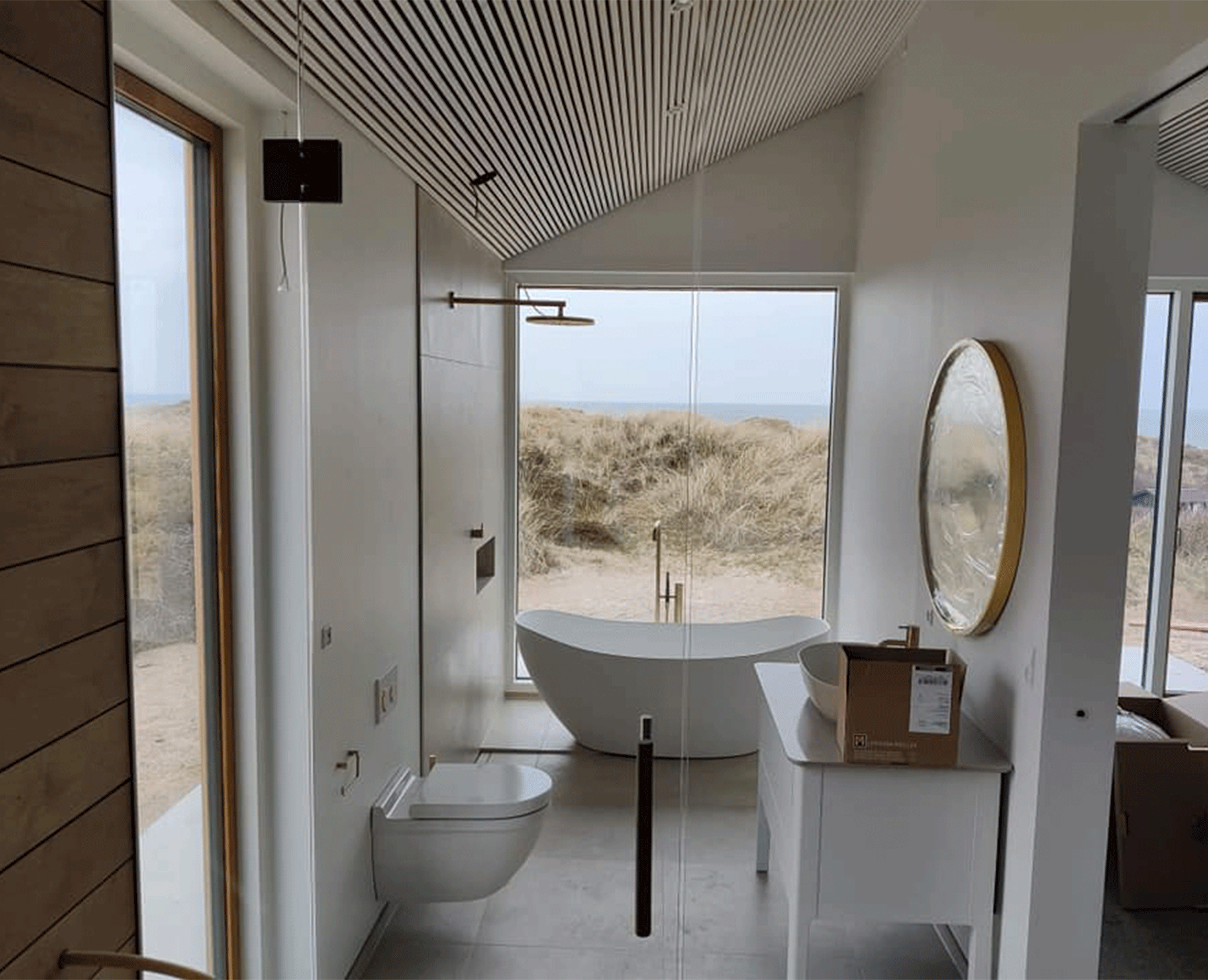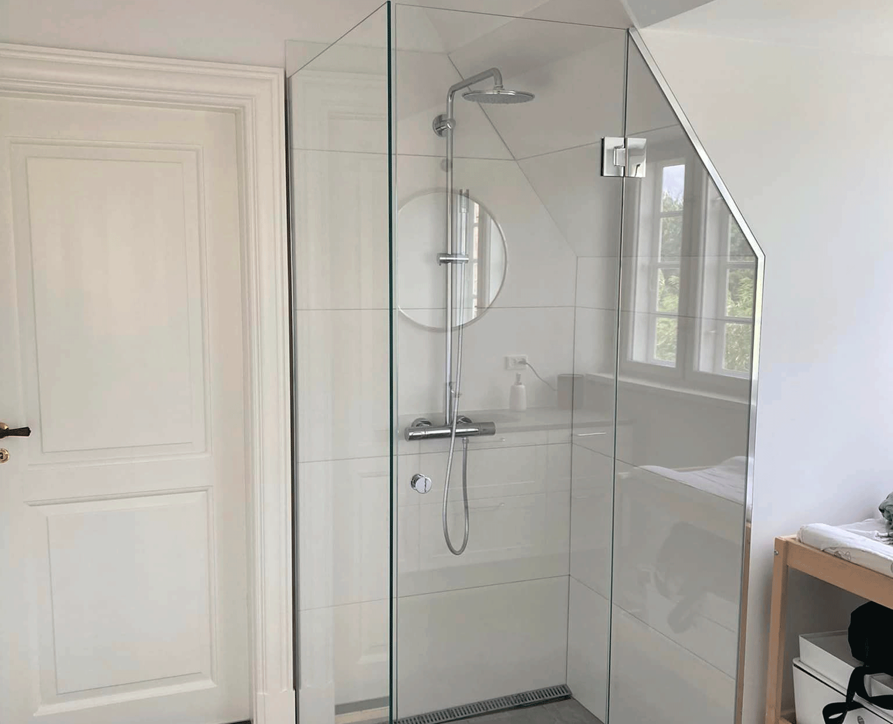 De fleste brusenicher har døre og vægge i glas. Hos glarmester Bertelsens i Nordjylland kan vi hjælpe med monteringen af døre og vægge til din bruseniche.